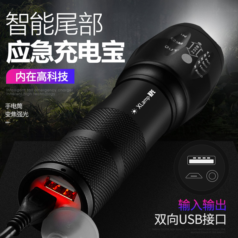 aic旗舰店手电筒强光可充电超亮远射家用户外微小型usb便携迷你充电宝led十年质保 可做应急充电宝